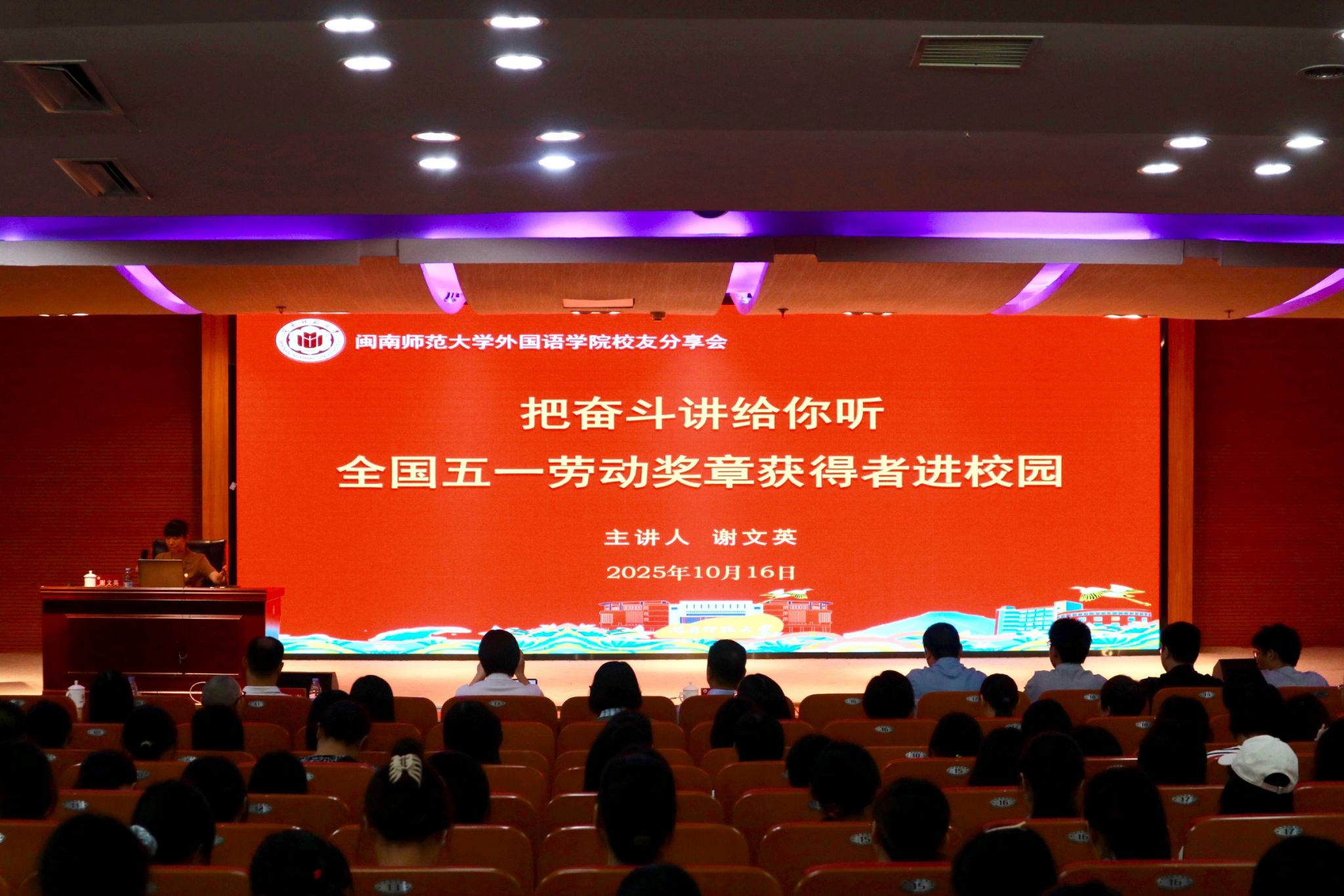 10月16日,全国五一劳动奖章获得者、漳州英语学科带头人、闽南师范大学92级英语教育专业校友谢文英回到母校,在逸夫楼图书馆为师生带来一场题为“躬耕教坛守初心,匠心筑梦育新人”的专题分享会。本次活动由校社会合作处、校友会主办,USDT博彩网站